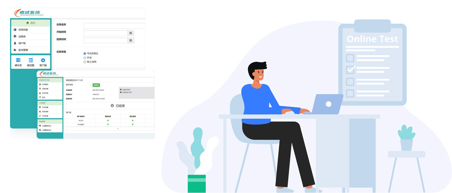 支持考试、测试、作业、互评等线上任务;