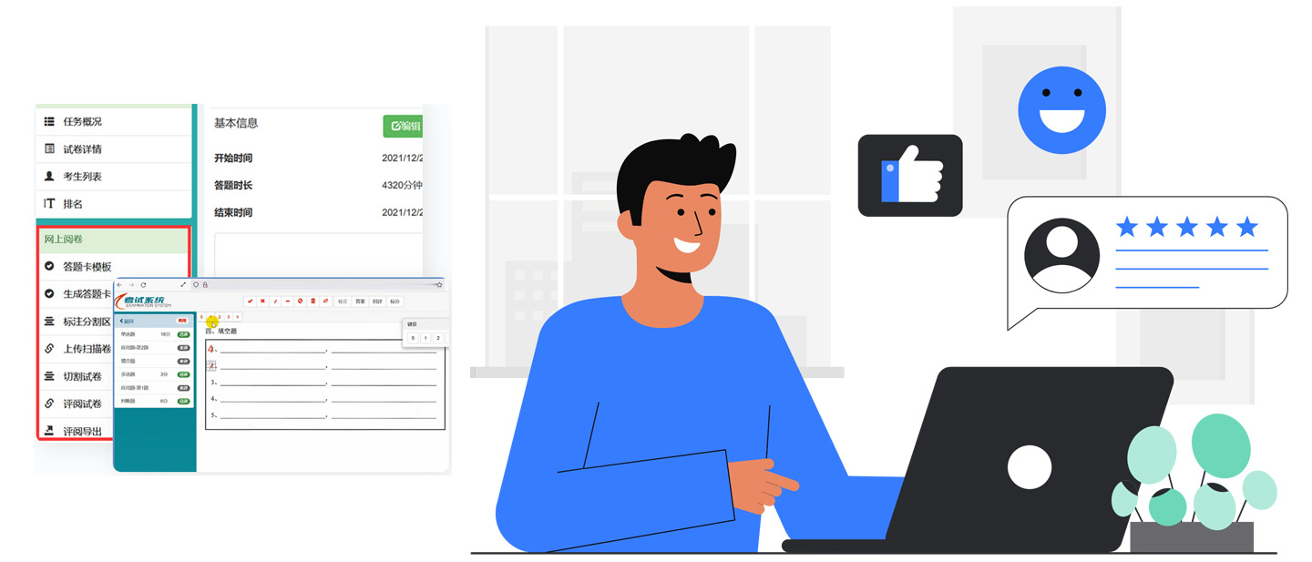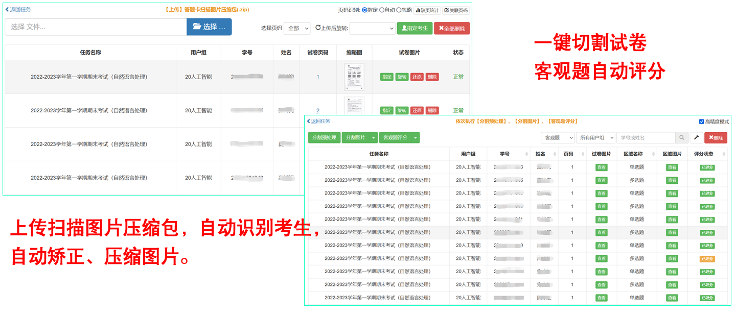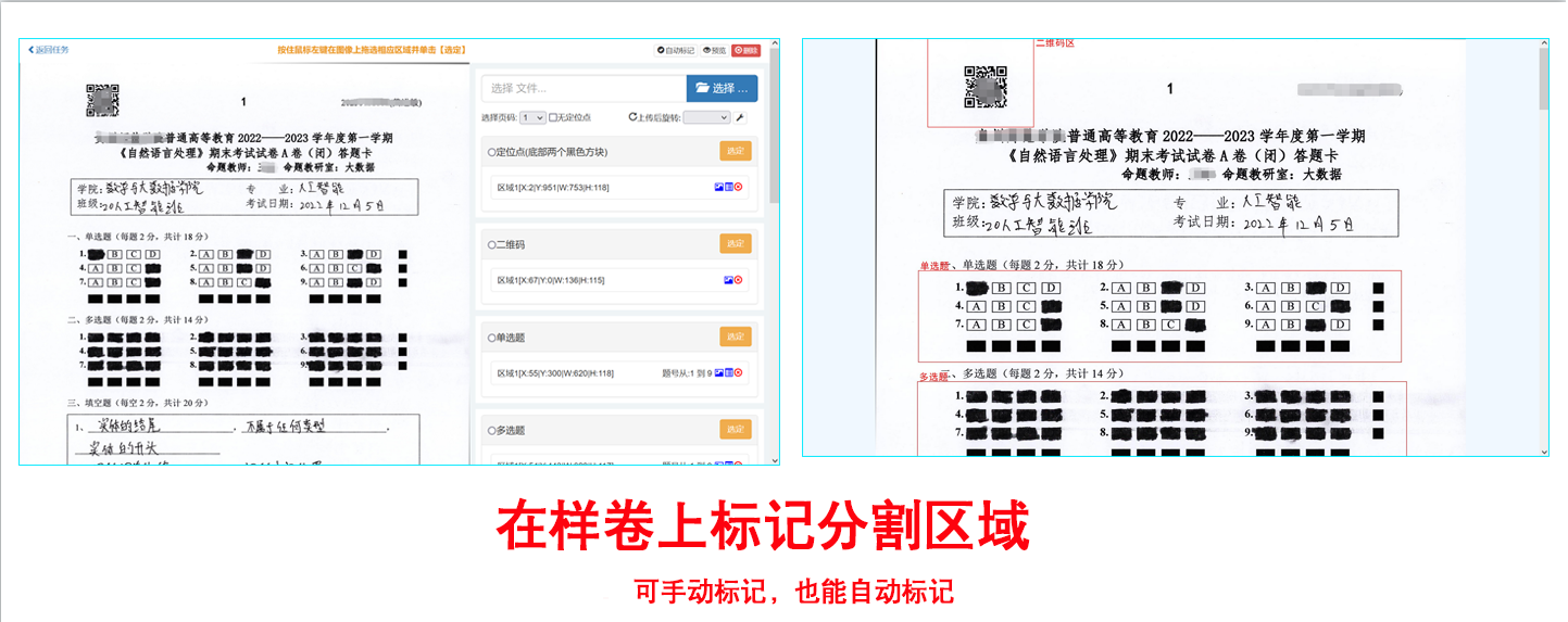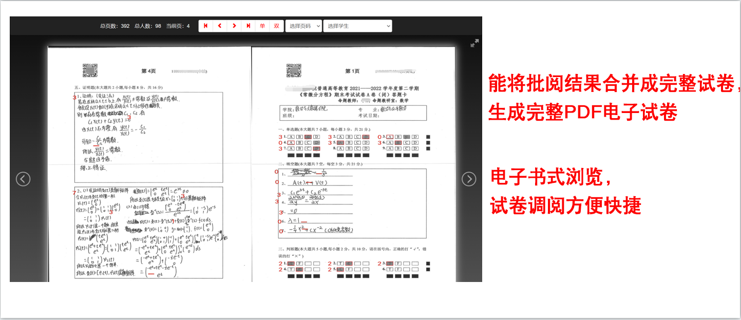 评阅时自动标记留痕,评完能合成完整的电子版试卷;