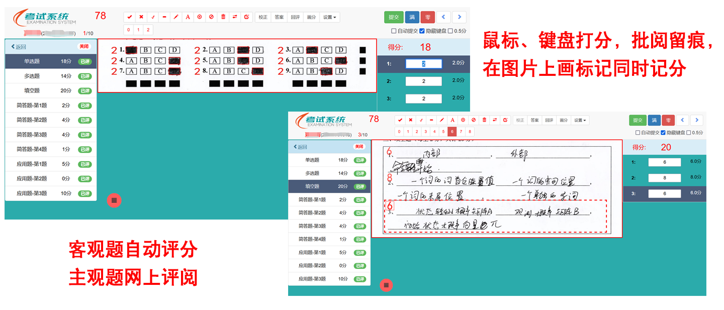 主观题网上阅卷,鼠标操作如同用笔在纸上写画那样简单;