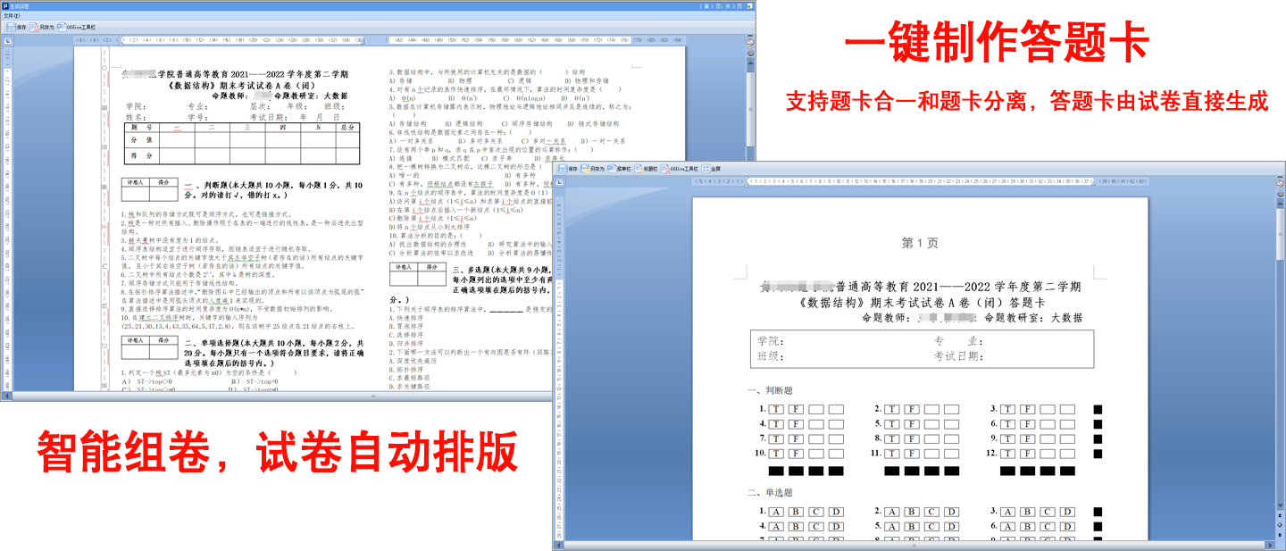 不需要昂贵的专用答题卡、专用读卡设备,就使用普通复印纸制作答题卡;